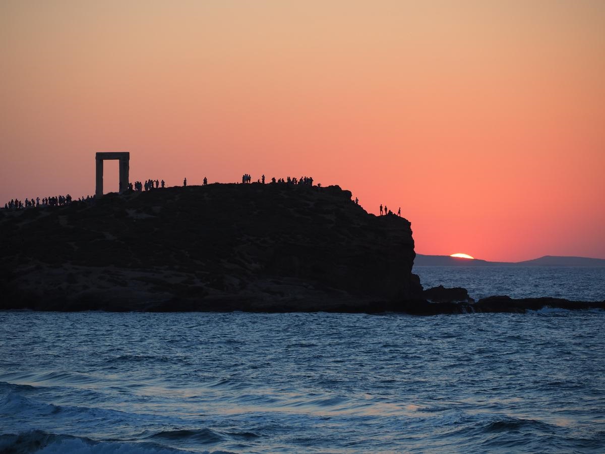 Diese Abendstimmung werden wir jetzt jeden Tag genießen. Jeden Abend versammeln sich die Menschen auf dem Hügel mit der Portara. Ich weiß gar nicht warum, von unserem Studio sieht alles viel schöner aus.