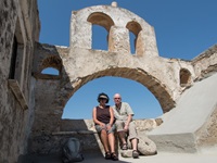 Die Portara auf einer kleinen Insel ist weithin sichtbar und ist das Wahrzeichen von Naxos. Vor ca. 2500 Jahren entstand hier ein Tempel, der aber nie vollendet wurde. Jedes der drei Teile wiegt ca. 20 Tonnen und stammt aus den 10 km entfernten Steinbrüchen. Es ist unvorstellbar, was die Menschen damals schon geleistet haben. Den Venezianern diente der Tempel als Steinbruch für ihr Kastro. Das Tor war ihnen wohl zu schwer.