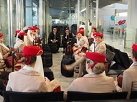 Die Anreise startete positiv. Beim Einchecken war eine lange Schlange am Schalter von Emirates. "Haben Sie online eingecheckt?" fragte ein freundlicher Herr vom Servicepersonal, "Dann bitte hier an diesen [leeren] Schalter" :-)