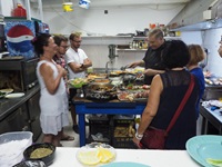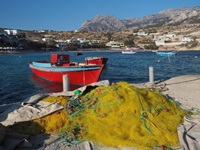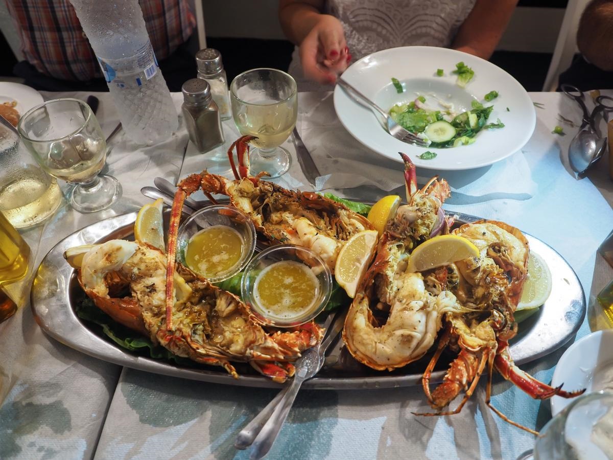 Vom kleinen Fischerhafen in Lefkos hat man einen herrlichen Blick auf unsere Badebucht und die Berge. Hier gibt es auch einige Tavernen, wo es auch Fisch gibt. Auf Bestellung bekommt man auch einen Lobster. Das haben wir uns mit unseren Freunden mal gegönnt und noch andere Leckereien, die man hier noch in der Küche präsentiert bekommt.
