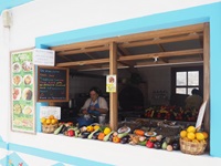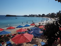Unser Badestrand war in ein paar Gehminuten zu erreichen. Die Brandung ist hier nicht so stark und auch der Wind ist etwas schwächer. Hier gibt es auch Liegen zu mieten. Wir hatten unsere Strandstühle dabei. Wenn man ausreichend gesonnt und gebadet hat, gibt es an diesem Strand einige nette Plätzchen, wo man bei einem kühlen Getränk, oder einer kleinen Zwischenmahlzeit auf den Strand hinunter schauen kann und eigentlich gar nicht mehr aufstehen möchte.