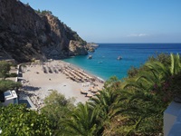 Wir wohnten in den Aegean Sea Studios am "Nordseestrand". Wir nennen ihn so, weil hier die Brandung schon mal etwas höher sein kann. Die Wassertemperatur ist aber wahrscheinlich nicht vergleichbar.