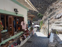 Hier kann man schön durch die Gassen schlendern die Auslagen in den Geschäften betrachten und vielleicht auch etwas kaufen und immer wieder die atemberaubenden Aussichten genießen. Hier werden auch noch Makarounes, die traditionellen Nudeln, auf dem Dach getrocknet.